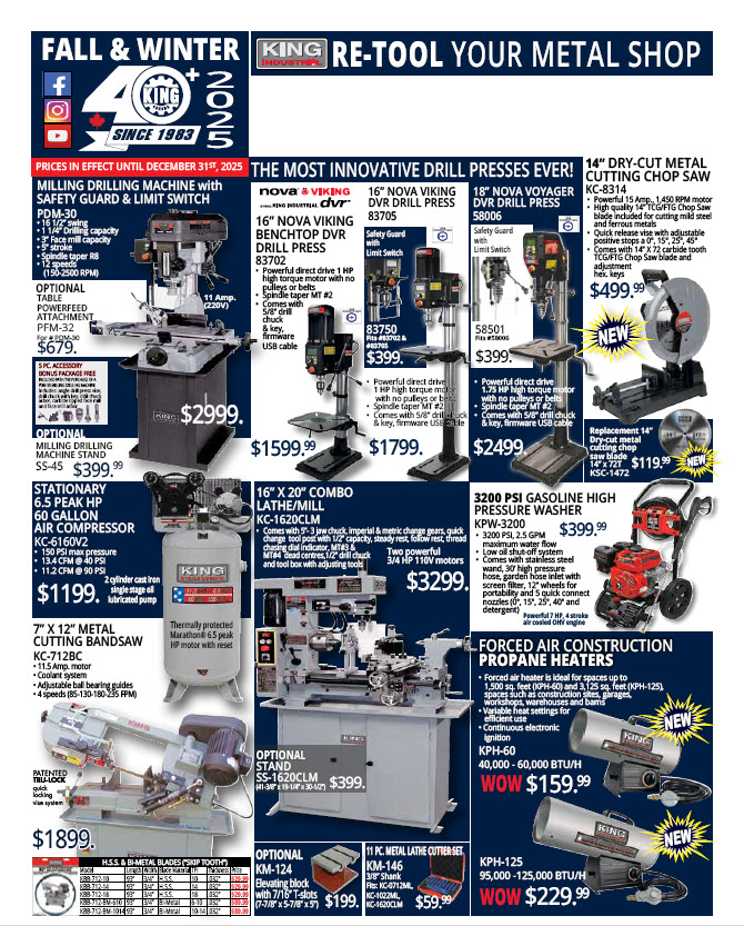 We offer a large variety of wood and metal working equipment for business and home use. We also carry a large selection of corded and cordless power tools and accessories from Milwaukee, Makita, Dewalt, King and others. We are your source for Safety Supplies, Construction Supplies, Abrasives, Diamond wheels, Screws, Lubricants, Adhesives, Tape, Carriage & Lag bolts, Hex Head and Socket Head bolts, Nuts & Washers, Sandpaper, Router bits; Saw blades, Band Saw blades and much more.