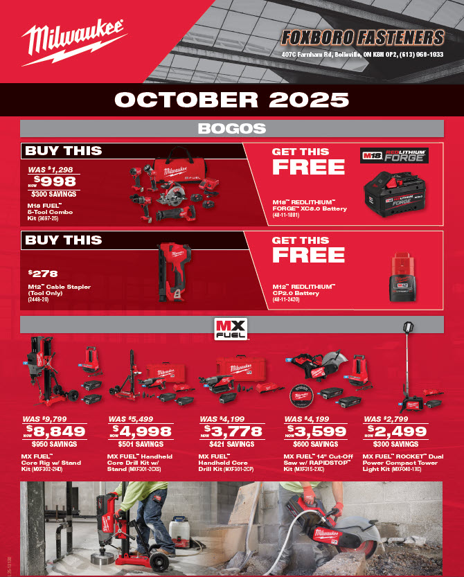 At Foxboro Fasteners in Belleville, Ontario we sell pneumatic and cordless Nailers and Staplers from many different suppliers, as well as fasteners to match for home builders, contractors and do-it-yourselfers. We take pride in our knowledge and skill of these Tools and Fasteners and how they work.